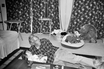 Logan loves to wrestle, and he did his fair share with Grandpa. Liam joined in, but the two litle ones were no match for Grandpa. Even Moki got in on the game.... but then.....