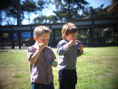 Logan at the age of 3 has already doubled the number of graduation ceremonies his dad attended in over 18 years of academic life in England! And Logan hasn't even graduated to the Big School yet... Here he is with Cai blowing bubbles as he says goodbye to his friend who departs to the Big School, where Lo might be joining him soon.