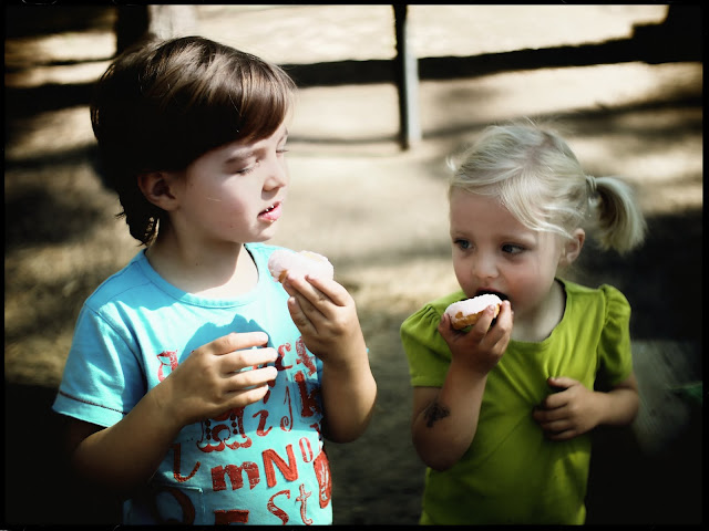 After a night sleeping in a tent, only a pink doughnut each can provide the revitalization to tackle the day :)