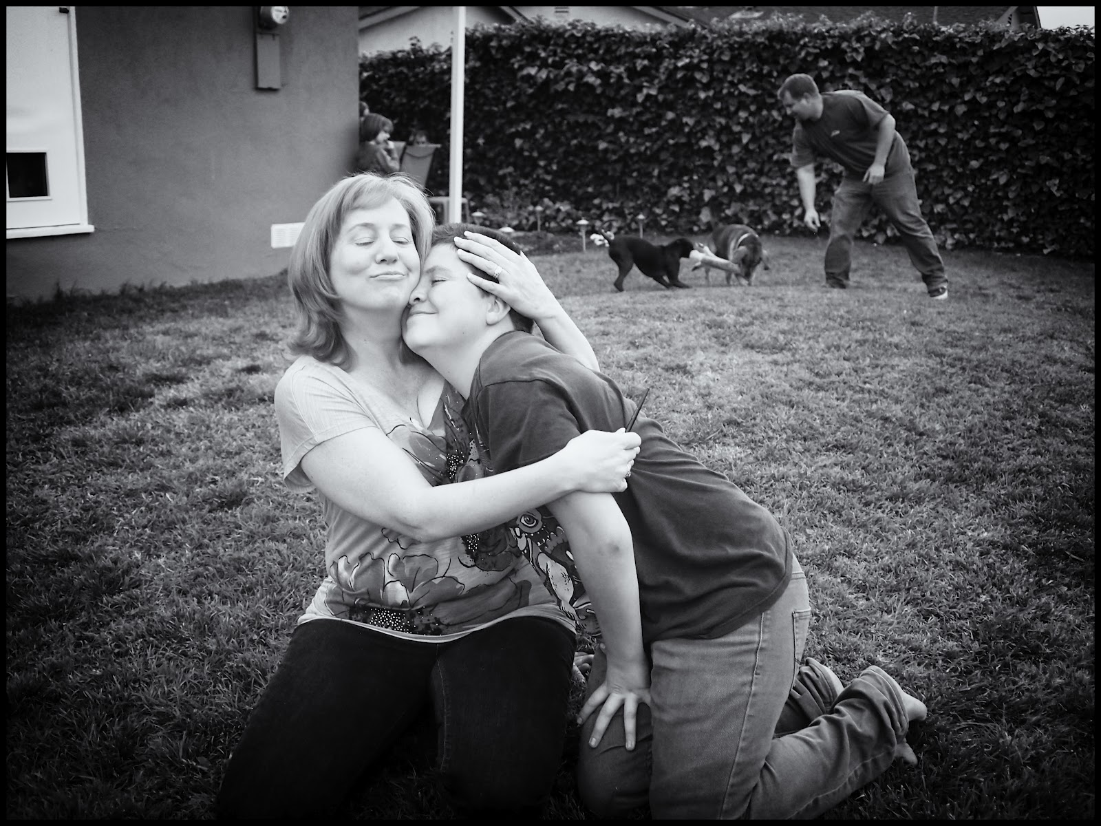 Threatening to eat her....or lick her here. :) They were a happy trio while it lasted.